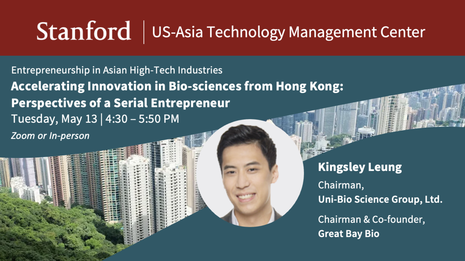 In this session, Kingsley Leung, Chairman of Uni-Bio Science Group and Co-founder of Great Bay Bio, will share his journey as a serial entrepreneur in the life sciences sector. He will reflect on lessons in entrepreneurial leadership, discuss how Uni-Bio Science has grown into a key enabler for go-to-market strategies in biopharma, and offer insights into the evolving startup and innovation landscape of Hong Kong and the Greater Bay Area—one of Asia’s emerging biotech hubs.