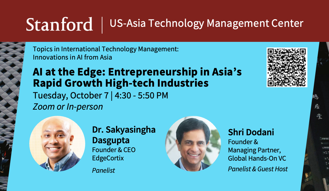 Entrepreneur Dr. Sakyasingha Dasgupta, Founder and CEO of EdgeCortix, will explore how AI is moving to the edge—processing data closer to where it’s created—and what that means for technology development, markets, and society. A leading venture investor, Shri Dodani, Founder and Managing Partner at Global Hands-On VC, will then share perspectives on the business opportunities and funding trends driving this transformation.